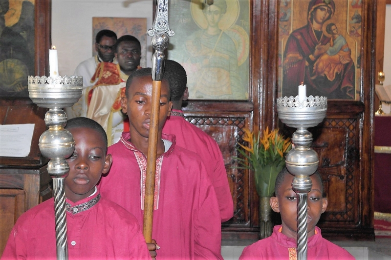 Την Κυριακή, 22α Μαΐου 2016, Θεοφιλ.Επίσκοπος Μπραζαβίλ και Γκαμπόν κ.Παντελεήμων ετέλεσε την Θεία Λειτουργία στον Ιερό Καθεδρικό Ναό Αγίου Δημητρίου Pointe Noire, με την συμμετοχή του Εφημερίου, Αιδεσιμ. Πρωτοπρ. π.Μαξίμου Oumba, Γενικού Αρχιερατικού Επιτρόπου της Ι.Επισκοπής, και του Αιδεσιμ. Πρεσβ. π.Παύλου Diafouka, Εφημερίου του Ιερού Ναού Αγίας Ειρήνης Dolisie, Διευθυντού του Ορθοδόξου Ορφανοτροφείου. Επίσης, εκήρυξε τον θείο λόγο αναφερθείς στην εγκατάλειψη του παραλύτου της Ευαγγελικής περικοπής.