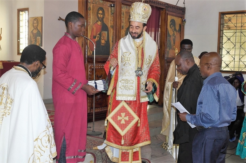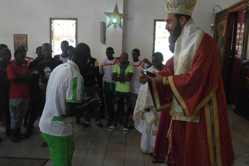 Ακόμη, επήνεσε την συμμετοχή στην Θεία Λειτουργία των ποδοσφαιριστών της ανασυσταθείσης το έτος 2014 ποδοσφαιρικής ομάδος «Ορθόδοξη Νεολαία», η οποία αφίχθη στην πόλη του Pointe-Noire από το Dolisie για την συμμετοχή της στους αγώνες της 1ης εθνικής κατηγορίας. Απευθυνόμενος στους νεαρούς ποδοσφαιριστές ο Θεοφιλέστατος ανεφέρθη στο αθλητικό ιδεώδες, όπως αυτό διεμορφώθη στην ελληνική αρχαιότητα και τους Ολυμπιακούς αγώνες, καθώς και στις χριστιανικές αρετές της αγωνιστικότητος, της εντιμότητος και του σεβασμού, ενώ συνεχάρη τον συνοδεύοντα την ομάδα π.Παύλο Diafouka για την ανύστακτη μέριμνά του υπέρ της πνευματικής προόδου των αθλητών. Προς όλους προσέφερε αντίτυπα της Καινής Διαθήκης και επιστηθίους σταυρούς.