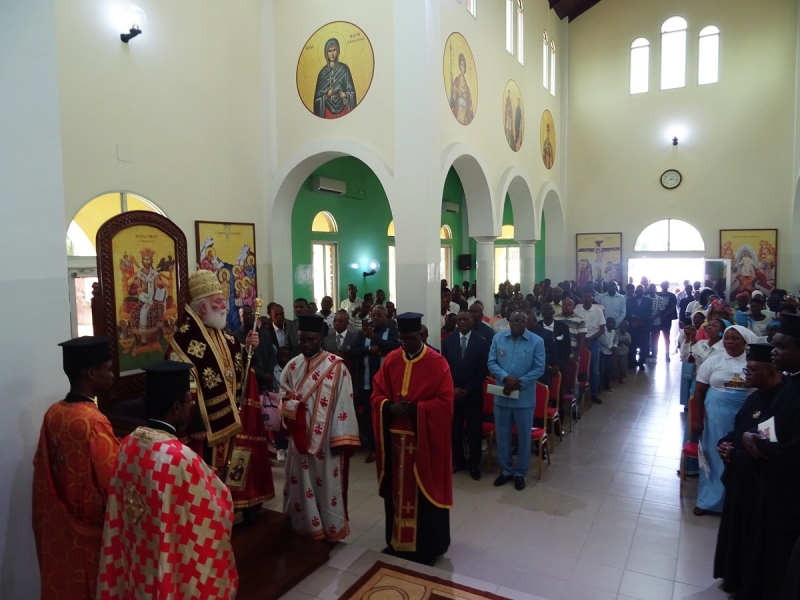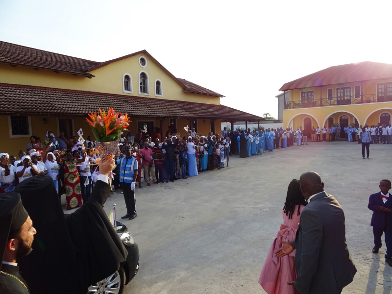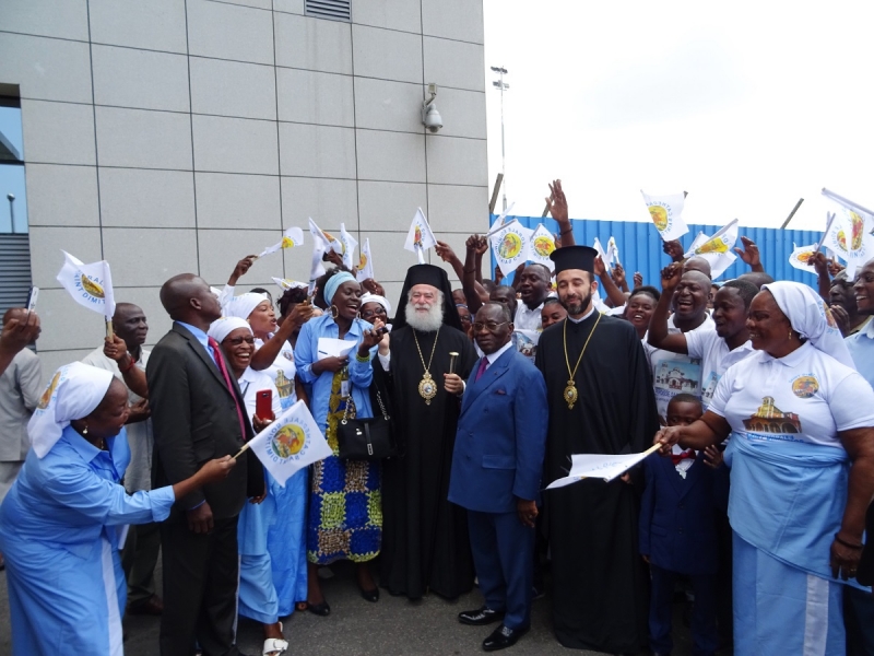 Στο διεθνή αερολιμένα Agostino Neto τον Μακαριώτατο υπεδέχθησαν ο Εξοχ. Κυβερνήτης κ.Alexandre Honoré Paka, ο ιερός κλήρος, οι ανώτατες στρατιωτικές και πολιτικές αρχές του τόπου και πλήθος πιστών.