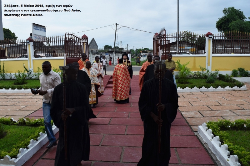 Με κατάνυξη και πνευματική ευφορία πραγματοποιήθηκαν την Κυριακή της Σαμαρείτιδος, 6η Μαΐου 2018, τα εγκαίνια του Ιερού Ναού Αγίας Φωτεινής, στο προάστειο Mpaka του Pointe-Noire (της τρίτης ορθοδόξου ενοριακής κοινότητος της συμπρωτεύουσας) από τον Σεβ. Μητροπολίτη Μπραζαβίλ και Γκαμπόν κ. Παντελεήμονα, με την συμμετοχή του ιερού Κλήρου της τοπικής Εκκλησίας, εκπροσώπων των αρχών και πλήθους πιστών. Το εσπέρας του Σαββάτου, 5ης Μαΐου, προηγήθηκε η κατάθεση των ιερών λειψάνων στον Ι. Ναό και ο Εσπερινός των εγκαινίων.