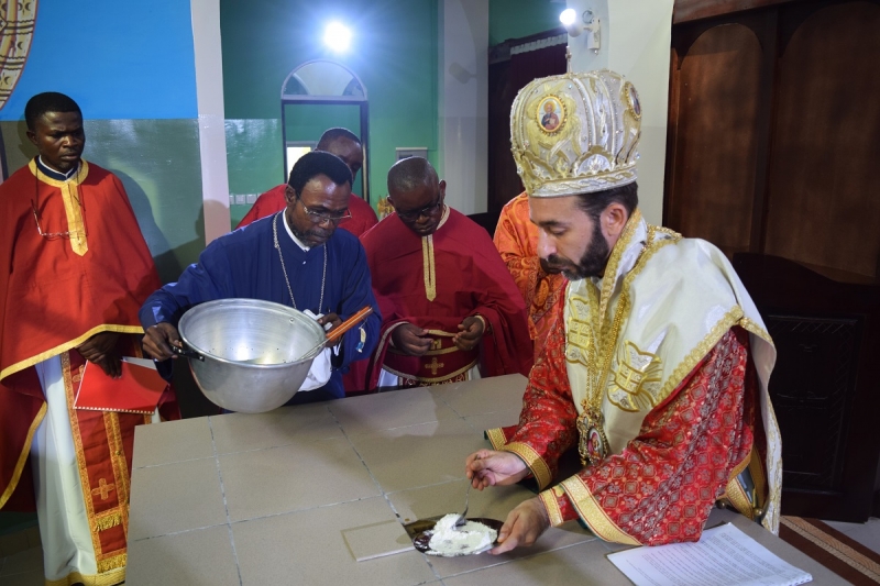 Προς όλους, ο Σεβασμιώτατος μετέφερε την πατρική αγάπη και τις ευγνώμονες ευχαριστίες του Σεπτού Προκαθημένου του παλαιφάτου Πατριαρχείου Αλεξανδρείας για την θεάρεστη συνεισφορά τους. Ακολούθησε εόρτιο γεύμα στον περιβάλλοντα χώρο του Ναού, με παραδοσιακά άσματα, ύμνους και χορούς από ορθόδοξες χορωδίες. Το χαροποιό γεγονός εκάλυψε η κρατική τηλεόραση Télé Congo και άλλα ΜΜΕ.