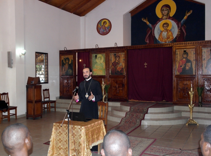 Στα πλαίσια της ποιμαντικής μέριμνας για τον ευαγγελισμό των βεβαπτισμένων μελών της τοπικής Εκκλησίας, ο Θεοφιλ.Επίσκοπος Μπραζαβίλ κ.Παντελεήμων πραγματοποίησε το απόγευμα της Δευτέρας, 14ης Οκτωβρίου 2014, διενοριακή σύναξη των πιστών των τριών Ενοριών της πόλεως του Pointe-Noire στον Ιερό Καθεδρικό Ναό Αγίου Δημητρίου, προς τους οποίους ανέπτυξε το θέμα «Η Εκκλησία ως Σώμα Χριστού». Προηγήθηκε η τέλεση της Ακολουθίας της Ιεράς Παρακλήσεως προς την Υπεραγία Θεοτόκο.