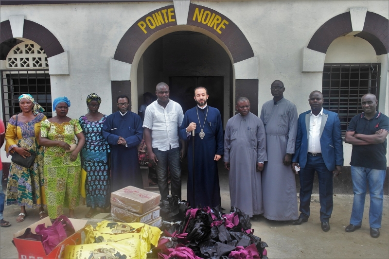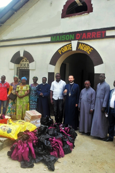 Την Τρίτη της Διακαινησίμου, 3η Μαΐου 2016, ο Θεοφιλ. Επίσκοπος Μπραζαβίλ και Γκαμπόν κ.Παντελεήμων, συνοδευόμενος από τον Γενικό Αρχιερατικό Επίτροπο, Αιδεσιμ. π.Μάξιμο Oumba, Εφημέριο του Ι.Καθεδρικού Ναού Αγίου Δημητρίου Pointe-Noire, τον Αιδεσιμ. π.Λαυρέντιο Mpinga, Εφημέριο του Ι.Ν.Αναλήψεως του Κυρίου Pointe-Noire, τον Αιδεσιμ. π.Σιλουανό Nkounkou, Εφημέριο του Ι.Ν.Αγίας Φωτεινής Pointe-Noire και συνεργάτες του φιλανθρωπικού έργου, επισκέφθηκε τις φυλακές της πόλεως για να προσφέρει ικανή ποσότητα ειδών ατομικής υγιεινής και διατροφής στους τριακοσίους εξήντα κρατουμένους αδελφούς. Η προσφορά αυτή ήταν προϊόν της αγάπης των ορθοδόξων πιστών των τριών Ενοριακών Κοινοτήτων της συμπρωτεύουσας, ως και της Ιεράς Επισκοπής, για την αγορά των προαναφερθέντων ειδών.