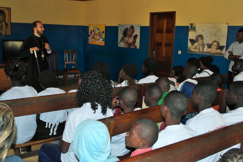 Εκεί εδέχθη την επίσκεψη ομάδος νέων, οι οποίοι είναι μέλη της Κινήσεως «Νέοι για την παγκόσμια ειρήνη». Οι νέοι παρουσίασαν τις δραστηριότητες που αναπτύσσουν προς ευαισθητοποίηση της νεολαίας του Κονγκό για την επικράτηση της ειρήνης στον κόσμο, συνωμίλησαν με τον Επίσκοπο και τα παιδιά του ορθοδόξου ευαγούς ιδρύματος και προσέφεραν ευγενώς ποσότητα ρουχισμού και τροφίμων.