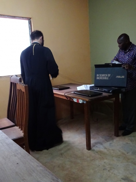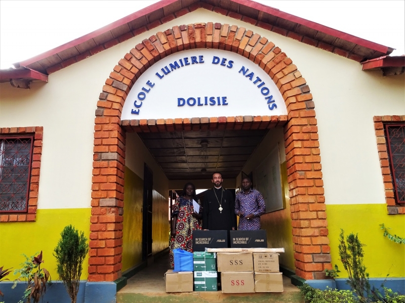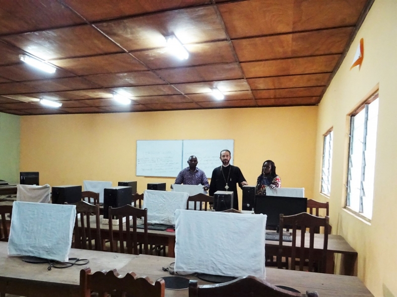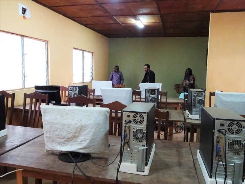 Επίσης ο Επίσκοπος παρέδωσε επισήμως στον Διευθυντή των Εκπαιδευτηρίων κ.Jean Claude Tchilimbou δύο νέους φορητούς υπολογιστές, τους οποίους ο ίδιος συνέδεσε και ασφάλισε στην αίθουσα πληροφορικής του σχολείου. Οι υπολογιστές αυτοί αποτελούν δωρεά της εταιρείας πληροφορικής BUROTOP IRIS.