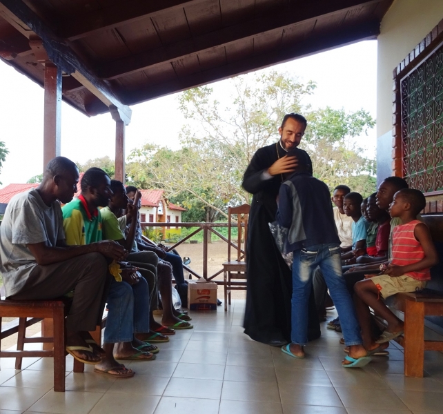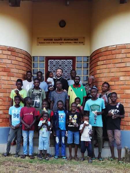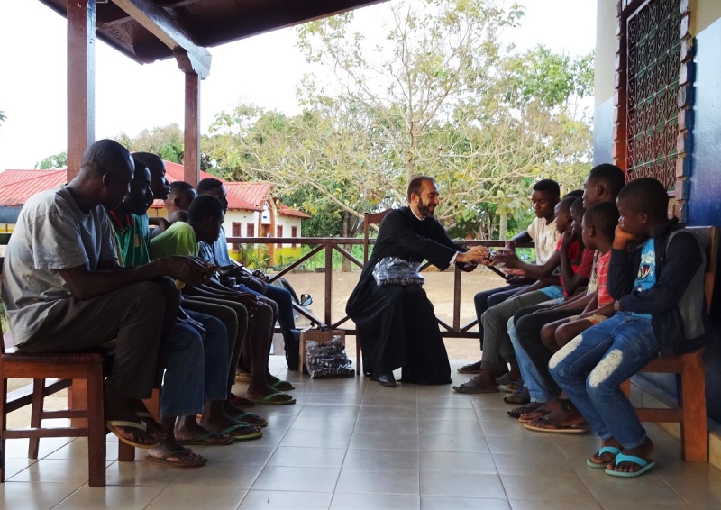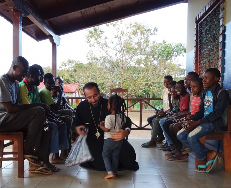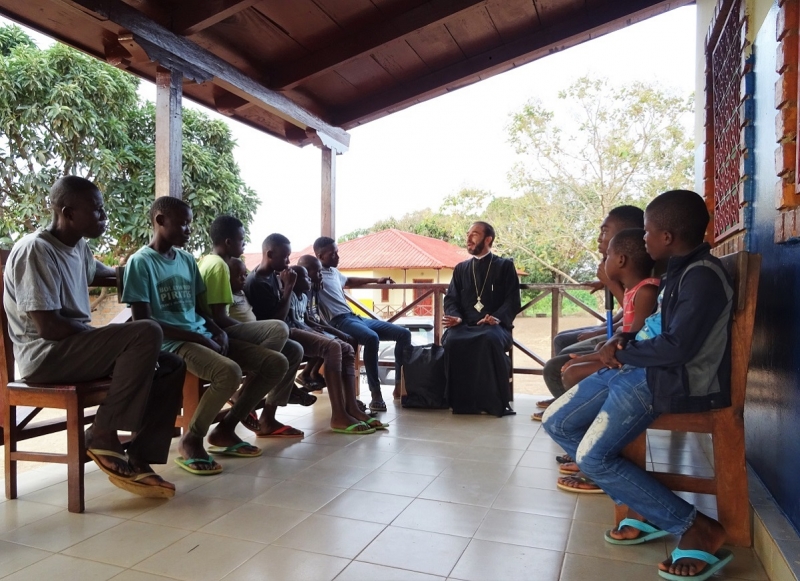 Ακολούθησε συνάντηση με τα περιθαλπόμενα παιδιά στο παρακείμενο πρότυπο Ορφανοτροφείο «Άγιος Ευστάθιος», προς τα οποία ο Σεβ. Μητροπολίτης μίλησε απλά για τον βίο του εορτάζοντος Αγίου Ευσταθίου, Προστάτου και Εφόρου του ιδρύματος, ως παραδείγματος θυσιαστικής αγάπης, ενώ τους προσέφερε γλυκίσματα και αναψυκτικά. Σημειώνεται ότι η ετήσια εορτή του Ορφανοτροφείου επί τη ιερά μνήμη του Αγίου Ευσταθίου θα λάβει χώρα την Κυριακή, 22α Σεπτεμβρίου ε.ε. στον Ι. Ενοριακό Ναό Αγίας Ειρήνης Dolisie .Αμέσως μετά ο Σεβασμιώτατος ανεχώρησε οδικώς προς Pointe-Noire, όπου αφίχθη τα μεσάνυχτα.