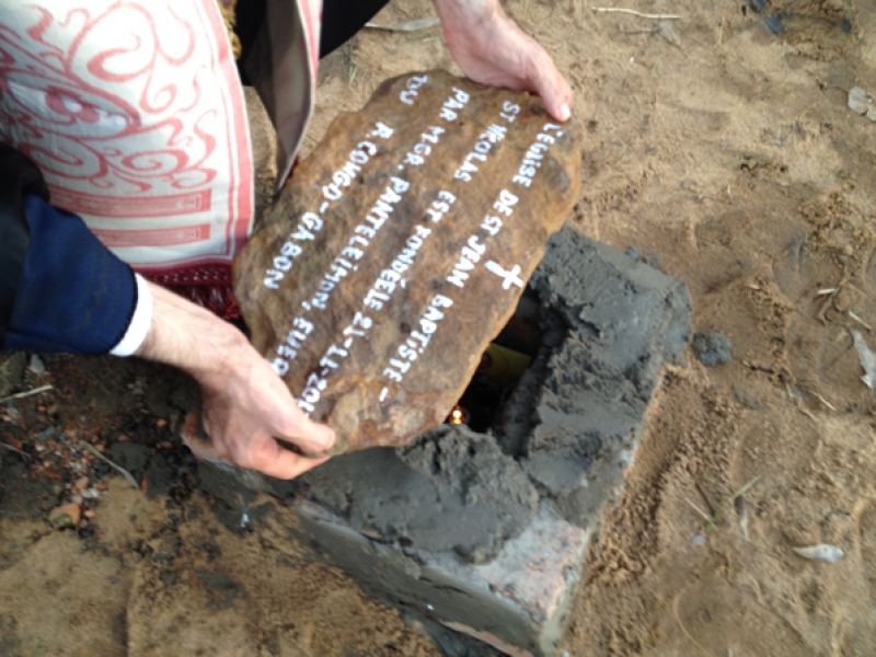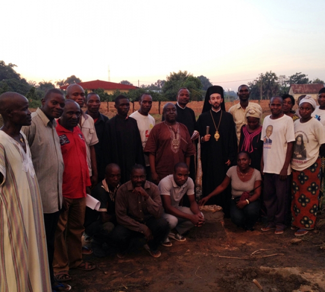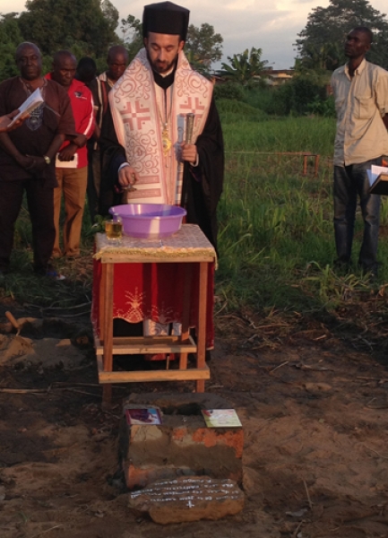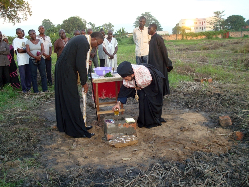 Το απόγευμα της ιδίας ημέρας, η οποία αποτελούσε την πρώτη επέτειο της αρχιερατικής εκλογής του, ο Επίσκοπος έθεσε, Χάριτι Θεού, τον θεμέλιο λίθο του Ιερού Ενοριακού Ναού στο κέντρο της πόλεως του Impfondo. Το ιερό τούτο ενδιαίτημα, το οποίο θα τιμάται επ’ ονόματι του Τιμίου Προδρόμου και του Αγίου Νικολάου, αποτελεί δωρεά ευσεβούς χριστιανής προς την τοπική Εκκλησία του Κονγκό διά του Ιεραποστολικού Συνδέσμου Θεσσαλονίκης «Άγιος Κοσμάς ο Αιτωλός» και είναι ο πρώτος Ορθόδοξος Ναός που ανεγείρεται στο βορρά της μεγάλης χώρας του Κονγκό, καθιστάμενος ταυτοχρόνως το ιεραποστολικό κέντρο για την περαιτέρω διάδοση του Ευαγγελικού κηρύγματος στην ευρύτερη περιοχή, έως τα σύνορα του Καμερούν και της Κεντροαφρικανικής Δημοκρατίας.