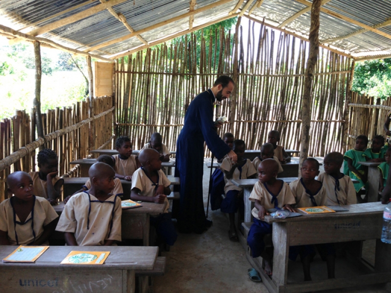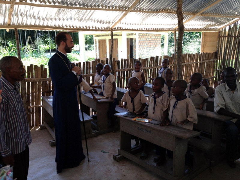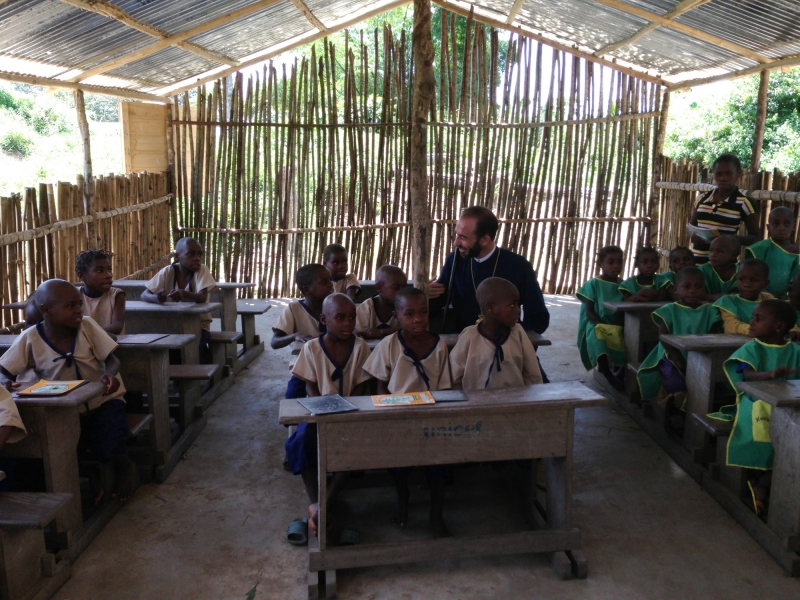 Αμέσως μετά μετέβη στο χωρίο των Πυγμαίων, εντός του τροπικού δάσους και παρέμεινε επί μακρόν στο μοναδικό «σχολείο» (ξύλινη καλύβα), προσφέροντας μικρές ευλογίες προς τους μαθητές.