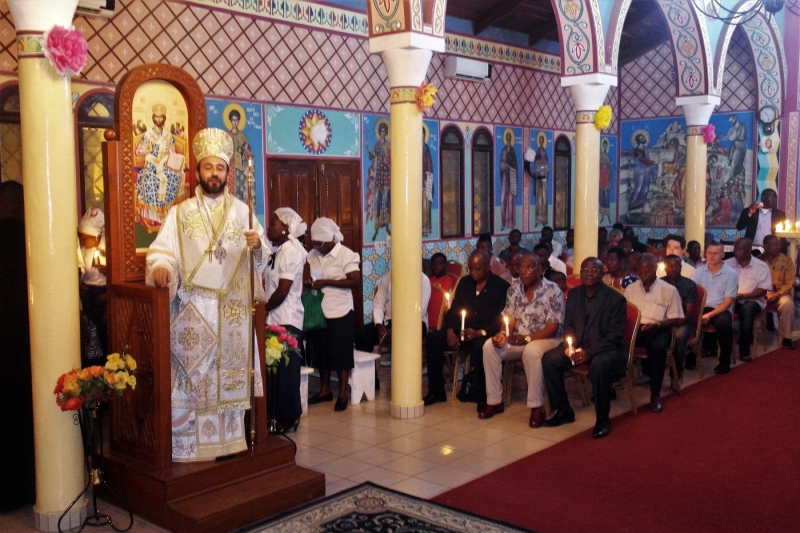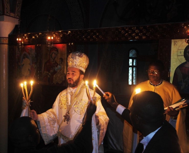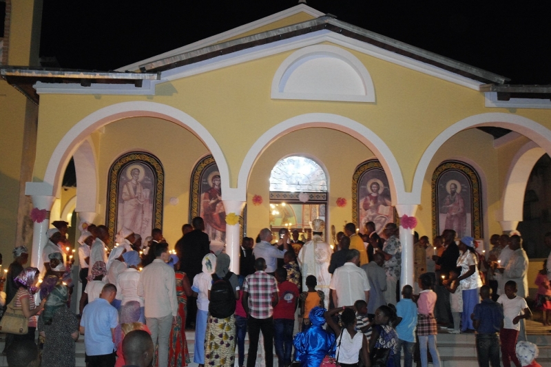 Με κατάνυξη και πνευματική ευφορία εορτάσθηκε η Ανάσταση του Θεανθρώπου στη πρωτεύουσα Μπραζαβίλ του Κονγκό. Ο Θεοφιλ. Επίσκοπος Μπραζαβίλ και Γκαμπόν κ.Παντελεήμων ετέλεσε τα μεσάνυχτα την Θεία Λειτουργία στον εορτάζοντα Ιερό Ναό Αναστάσεως του Κυρίου.