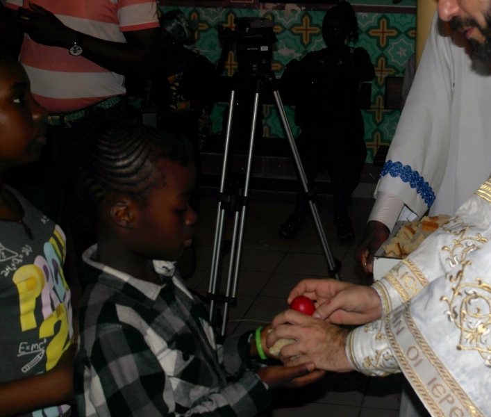 Κατά την Ευχαριστιακή Σύναξη ο Επίσκοπος ανέγνωσε το Πασχάλιο Μήνυμα του Μακαριωτάτου Πάπα και Πατριάρχου Αλεξανδρείας και πάσης Αφρικής κ.κ.Θεοδώρου Β’. Επίσης, συνεχάρη τον Αιδεσιμ.Εφημέριο π.Σέργιο Mabelemo και την Εκκλησιαστική Επιτροπή για την, καθ’υπόδειξιν της Ι.Επισκοπής, έναρξη των εργασιών εξωτερικής επισκευής και ελαιοχρωματισμού του Ναού και προσέφερε ένα σημαντικό ποσό για την ολοκλήρωσή τους.