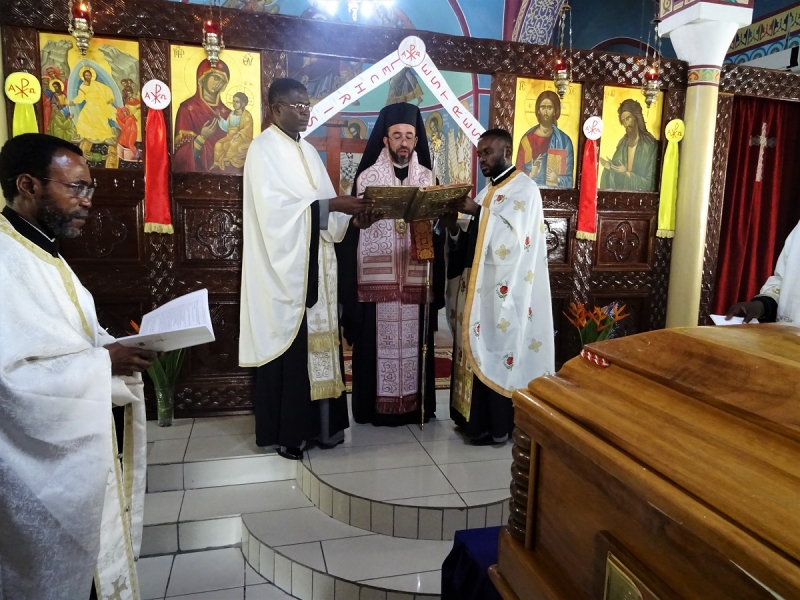 Σε κλίμα συγκίνησης ετελέσθη την Τετάρτη, 5η Ιουνίου 2019, στον Ιερό Ενοριακό Ναό Αναστάσεως του Κυρίου Μπραζαβίλ, η εξόδιος Ακολουθία του μακαριστού Εφημερίου του, Οικονόμου π.Σεργίου Mabelemo, προεξάρχοντος του Σεβ. Μητροπολίτη Μπραζαβίλ και Γκαμπόν κ.Παντελεήμονος, ο οποίος αφίχθη αεροπορικώς στην πρωτεύουσα προς τούτο.