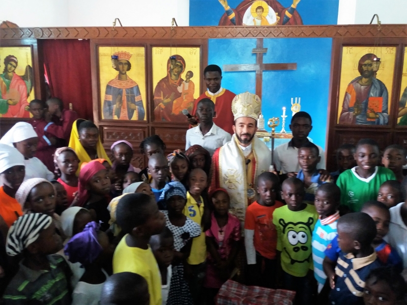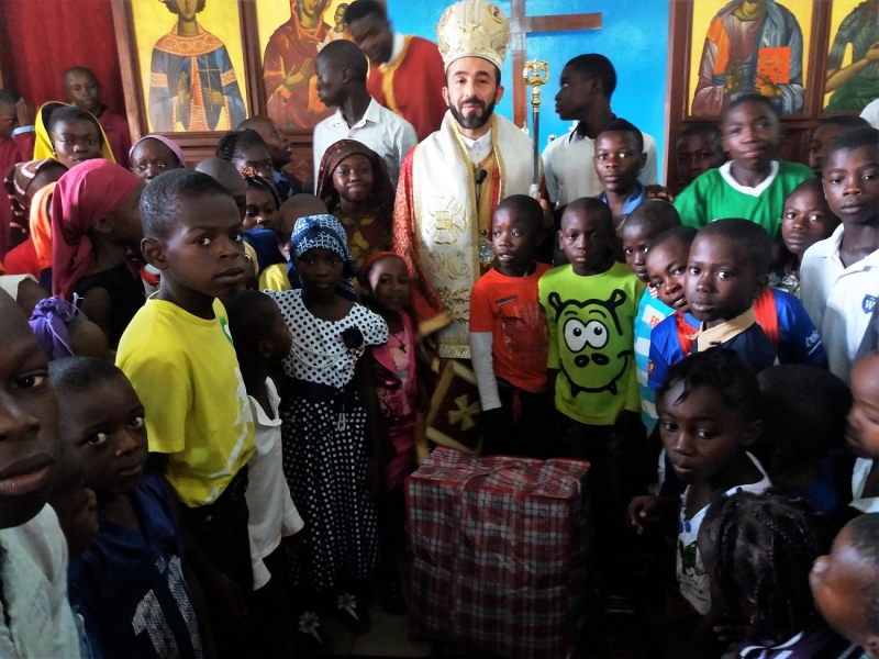 Προ του πέρατος της Θείας Λειτουργίας προσέφερε ποσότητα ρούχων στα μικρά παιδιά, ενώ ο Πρόεδρος της Ενοριακής Επιτροπής κ.Rigober Dallou προσεφώνησε τον Επίσκοπο, ευχαριστώντας τον για την αδιάκοπη πατρική του μέριμνα προς την Ενορία και τα παρακείμενα σε αυτήν ιδρύματα (ορφανοτροφείο και σχολείο), ενώ υπογράμμισε την δυναμική παρουσία της Ορθοδόξου Εκκλησίας στην κοινωνία. Ευγνώμονες ευχαριστίες εξέφρασε και προς τον κ.Κυβερνήτη και τους λοιπούς εκπροσώπους των αρχών της περιφερείας Niari για την τιμητική παρουσία τους.