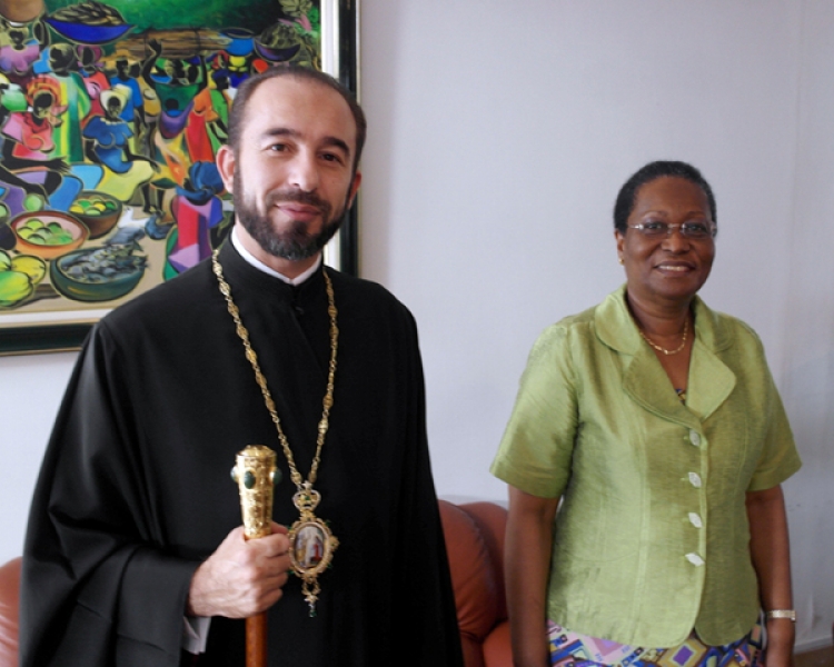 Στην συνάντηση παρίσταντο, επίσης, ο Αιδεσιμ.Πρωτοπρ.κ.Bernard Diafouka, Εφημέριος της Ενοριακής Κοινότητος Αναστάσεως του Κυρίου Μπραζαβίλ και η Διευθύντρια του Ιδιαιτέρου Γραφείου της κας.Υπουργού.