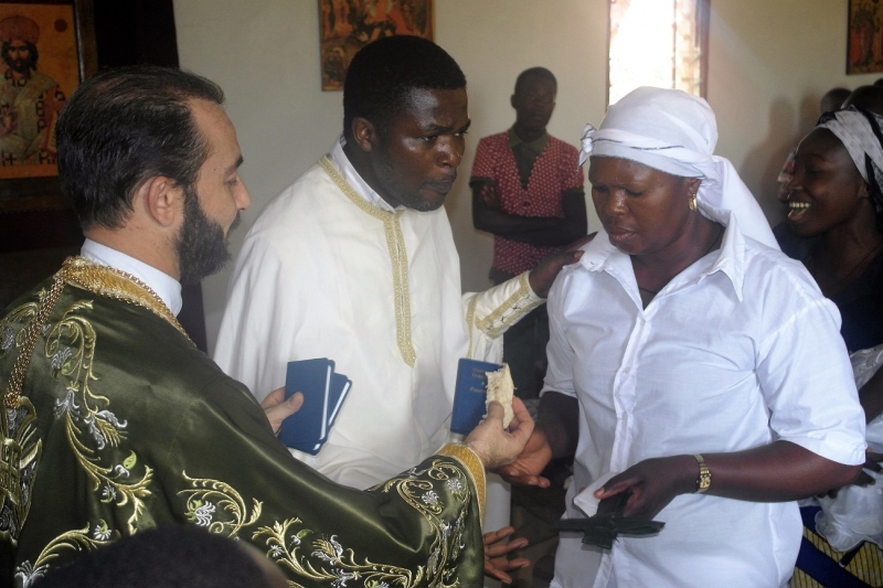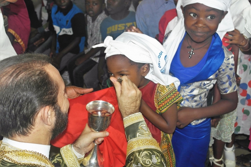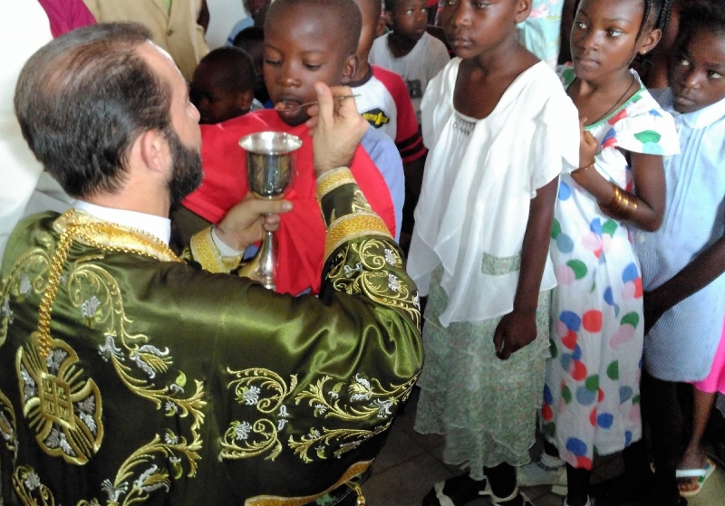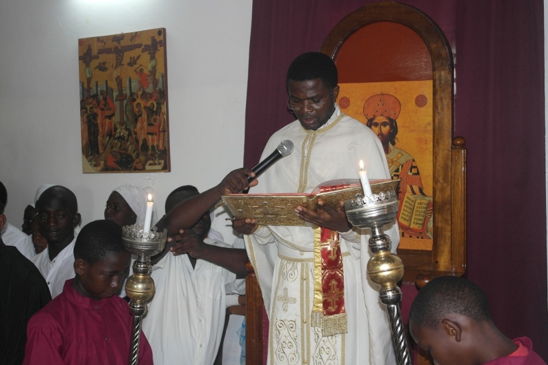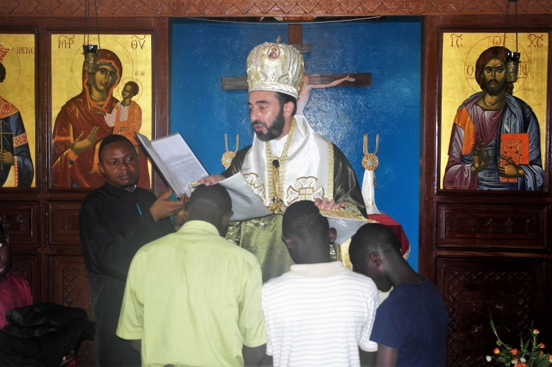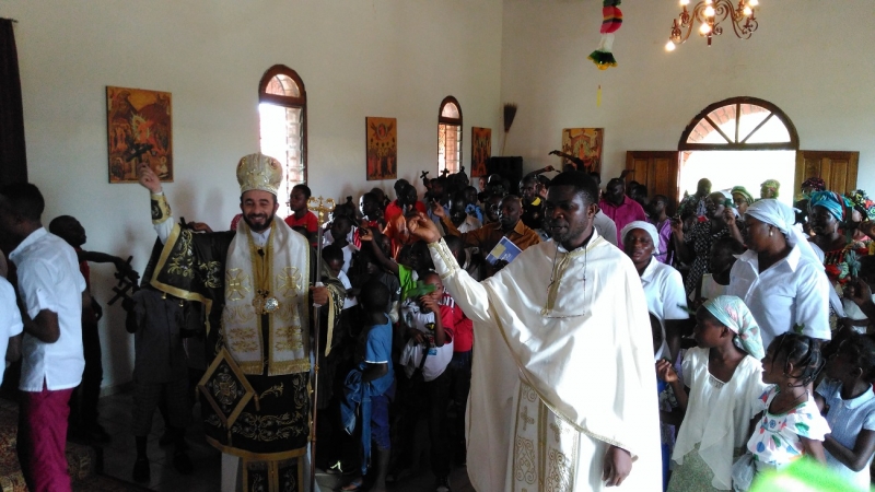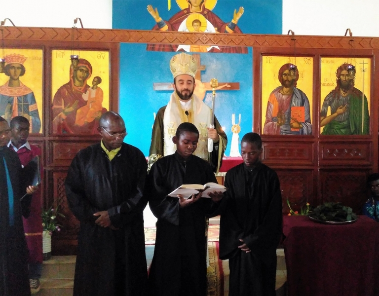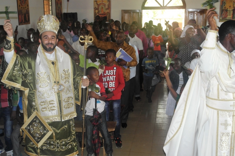 Με λαμπρότητα εωρτάσθη η Κυριακή των Βαΐων, 23η Απριλίου 2016, στον Ιερό Ενοριακό Ναό Αγίας Ειρήνης πόλεως Dolisie. Ο Θεοφιλ. Επίσκοπος Μπραζαβίλ κ.Παντελεήμων προέστη της Θείας Λειτουργίας και εκήρυξε τον θείο λόγο. Προ της απολύσεως, εχειροθέτησε τρεις νέους Aναγνώστες, τον κ.Christian Nsouami, κατηχητή της Ενορίας, ως και τους νεαρούς Κωνσταντίνο Maniougui και Παναγιώτη Mabiala, εκ των περιθαλπομένων παιδιών στο ορθόδοξο ορφανοτροφείο «Άγιος Ευστάθιος».