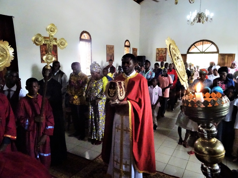 Με λαμπρότητα εωρτάσθη η Κυριακή των Βαΐων την 1η Απριλίου 2018, στον Ιερό Ενοριακό Ναό Αγίας Ειρήνης πόλεως Dolisie, προεξάρχοντος του Σεβ.Μητροπολίτη Μπραζαβίλ κ.Παντελεήμονος, ο οποίος προέστη της Θείας Λειτουργίας και εκήρυξε τον θείο λόγο.