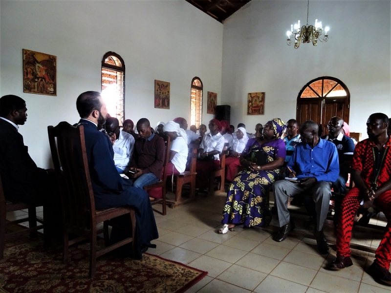 Εν συνεχεία, έλαβε χώρα σύσκεψη με τον Εφημέριο, την Ενοριακή Επιτροπή, τους Αναγνώστες, τα μέλη της χορωδίας, την ομάδα των κυριών (bureau des mamans) και τις ευπρεπίστριες του Ναού, κατά την οποία ο Μητροπολίτης εξήγησε θέματα θείας λατρείας και τυπικής διάταξης ιερών Ακολουθιών, έδωσε πατρικές οδηγίες και έκανε συστάσεις εν όψει της αρχομένης Αγίας και Μεγάλης Εβδομάδος. Κατόπιν, ανέχωρησε οδικώς προς την έδρα της Ιεράς Μητροπόλεως, στην συμπρωτεύουσα Pointe-Noire.