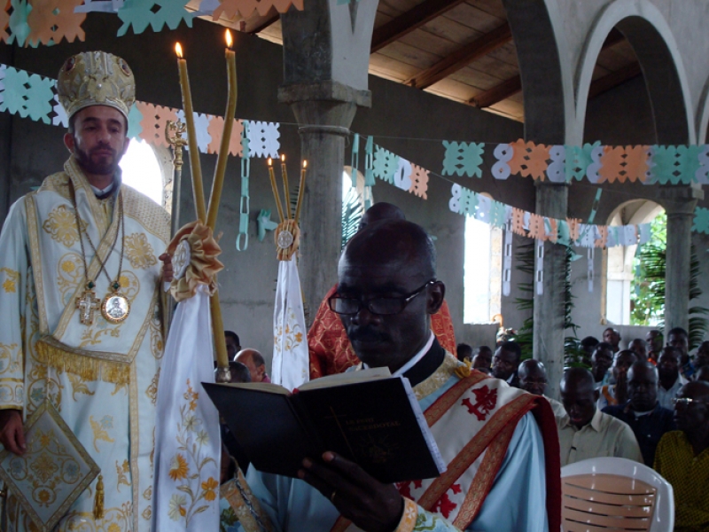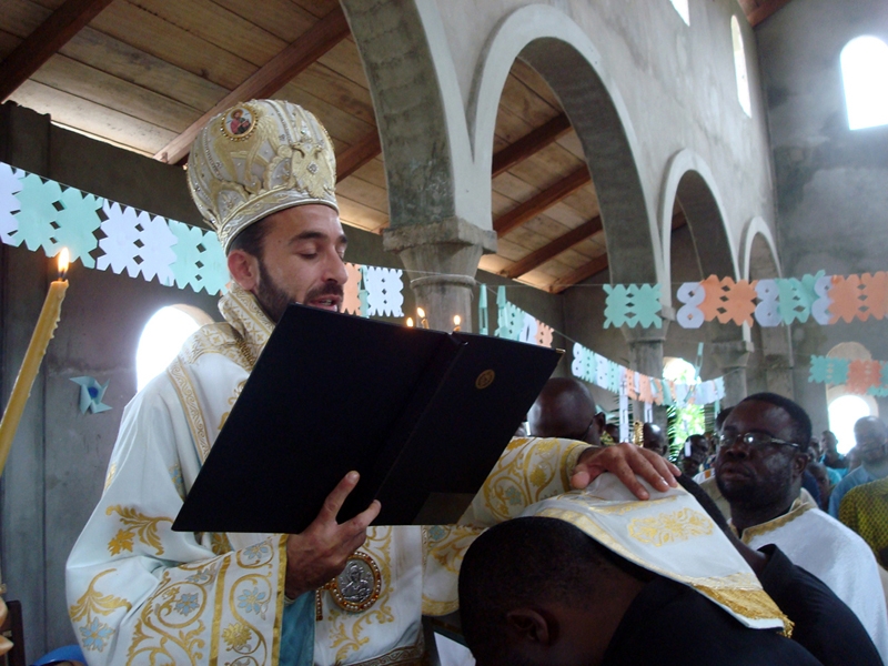 Με λαμπρότητα εορτάσθη στο χωρίο Louingui του νοτίου Κονγκό η μνήμη του Αγίου Σπυρίδωνος στον φερώνυμο Ιερό Ενοριακό Ναό, την Κυριακή, 15 Δεκεμβρίου 2013. Ο Θεοφ. Επίσκοπος Μπραζαβίλ και Γκαμπόν κ.Παντελεήμων ετελέσε Αρχιερατική Θεία Λειτουργία, κατά την διάρκεια της οποίας χειροτόνησε εις Πρεσβύτερο, Σεπτή Πατριαρχική αδεία και ευλογία της ΑΘΜ, τον Διάκονο π.Jean-Marie Marc Zingoula.