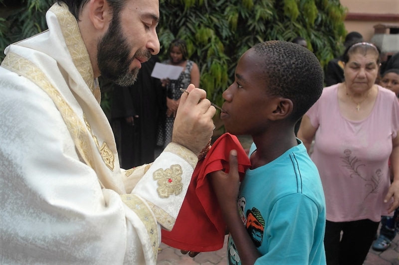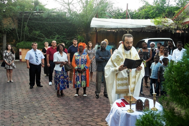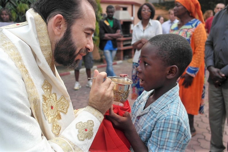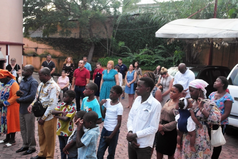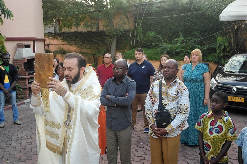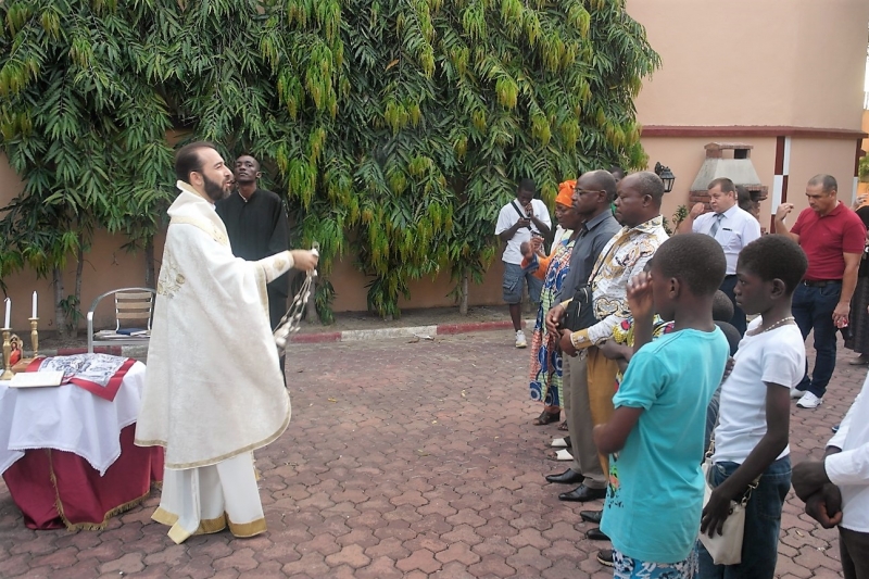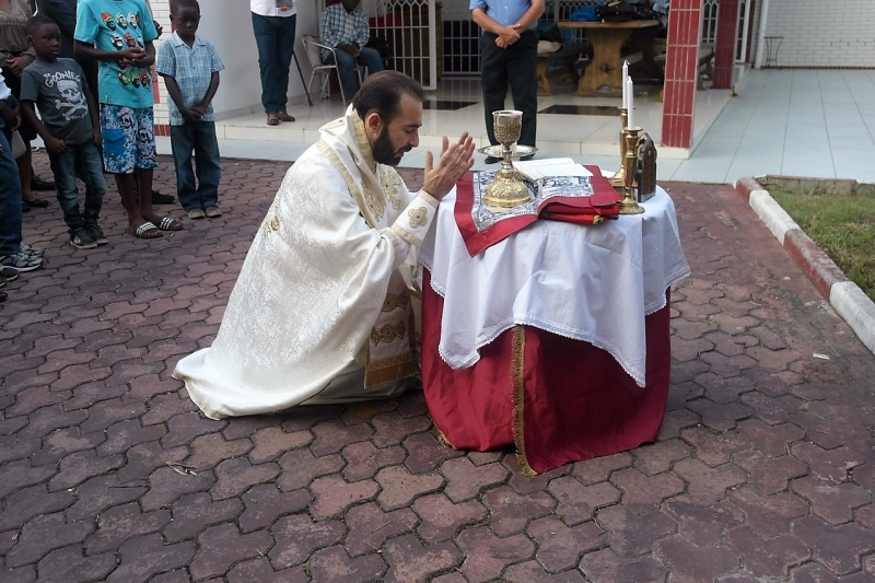 Το απόγευμα της ιδίας ημέρας ετέλεσε την Θεία Λειτουργία και εκήρυξε τον θείο λόγο στην οικία του Εντιμ. κ.Προξένου της Σερβίας, με την προσευχητική συμμετοχή γκαμπονέζων, ρώσων, σέρβων και σύρων αδελφών. Ακολούθησε σύναξη κατά την οποία ο Επίσκοπος ανέπτυξε θέματα πίστεως, με σκοπό την εμψύχωση των ορθοδόξων μετά τα αιματηρά γεγονότα που έλαβαν χώρα εξ αφορμής των προσφάτων Προεδρικών εκλογών, ενώ μετέφερε τις πατρικές ευχές, τις ευλογίες και το αμέριστο ενδιαφέρον της ΑΘΜ του Πάπα και Πατριάρχου Αλεξανδρείας και πάσης Αφρικής κ.κ.Θεοδώρου Β’.