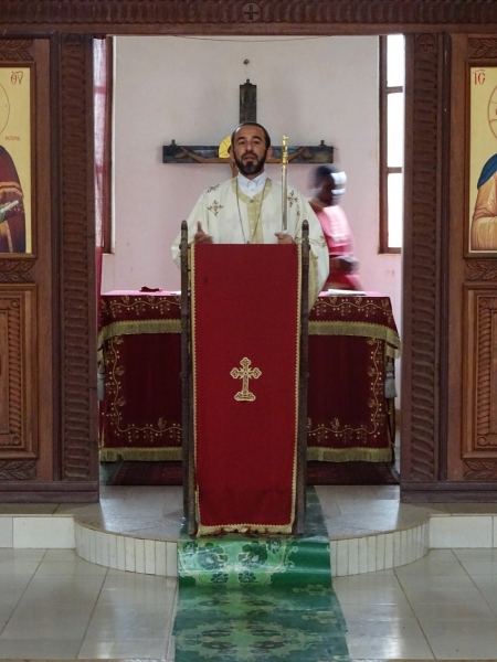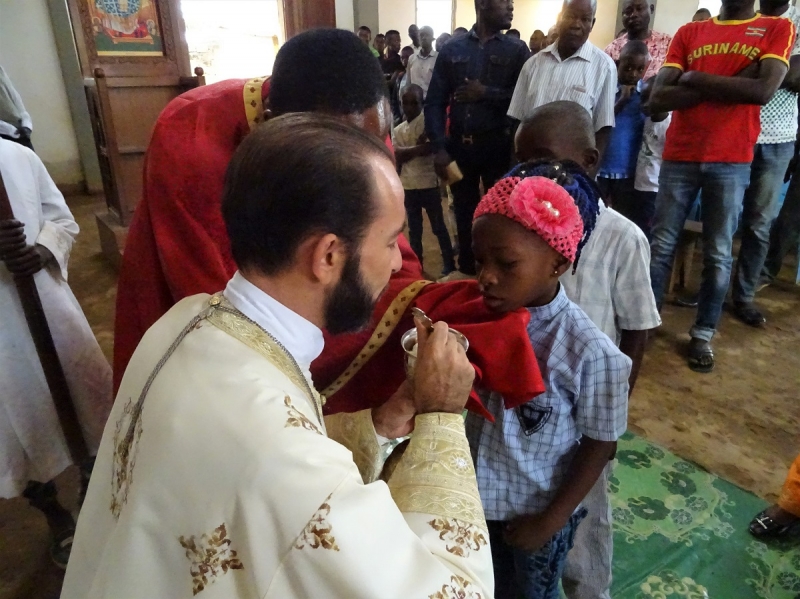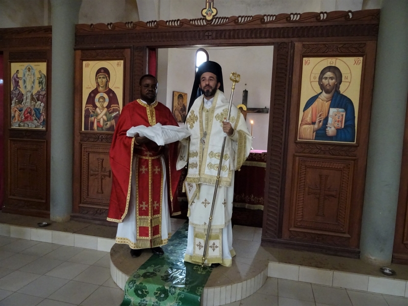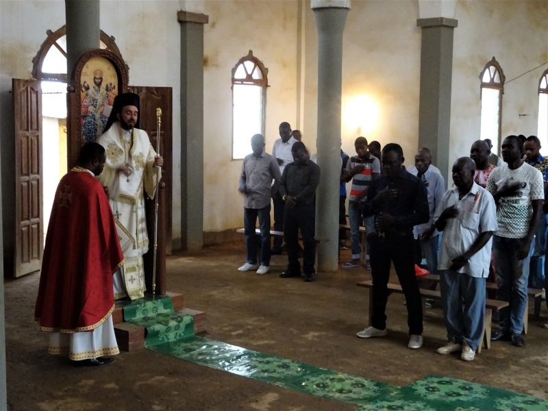 Αμέσως μετά την άφιξη του ετέλεσε την Θεία Λειτουργία, και εκήρυξε τον θείο λόγο. Επίσης, προσέφερε μία ιερατική στολή στον Εφημέριο π.Δημήτριο Otomba.