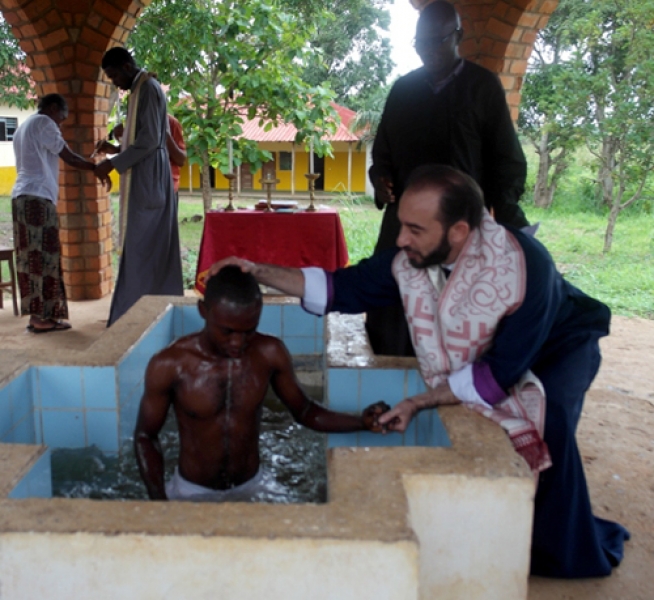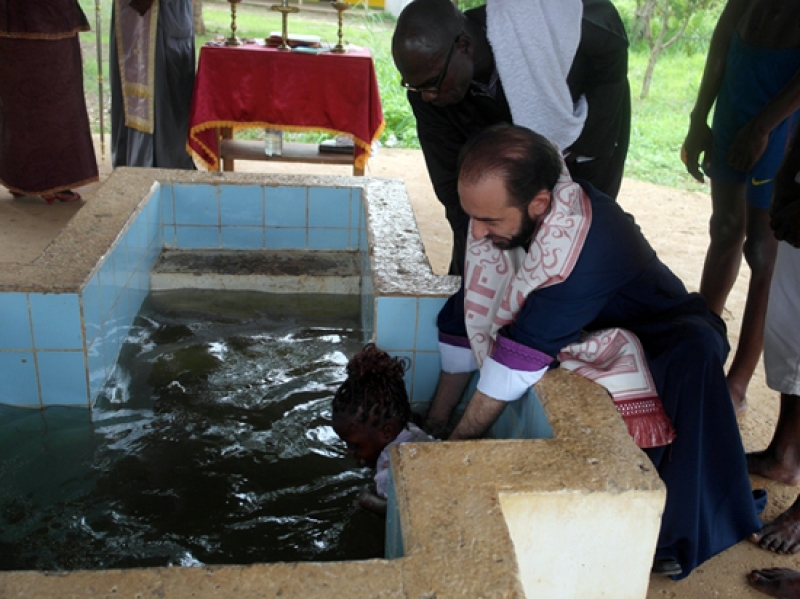 Κατόπιν, ετέλεσε τις βαπτίσεις έξι νεοφωτίστων όλων των ηλικιών στο υπαίθριο βαπτιστήριο του Ιερού Ενοριακού Ναού Αγίας Ειρήνης, οι οποίοι κατηχήθησαν συστηματικώς από τον δραστήριο Εφημέριο π.Παύλο Diafouka.