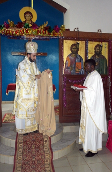 Την επομένη, Κυριακή 28η Δεκεμβρίου, ο Θεοφιλέστατος προεξήρχε της Θείας Λειτουργίας και εκήρυξε τον θείο λόγο στον Ι.Ναό της Αγίας Ειρήνης. Μετά το πέρας της Λειτουργικής Συνάξεως προσέφερε ιερατική στολή στον Εφημέριο, Αιδεσιμ.π.Παύλο Diafouka, Διευθυντή του ορθοδόξου ορφανοτροφείου, επί τη συμπληρώσει ενός έτους από της εις Πρεσβύτερον χειροτονίας του, δώρα σε όλα τα παιδιά της Ενορίας και εικονίσματα στους πιστούς, με τους οποίους είχε την ευκαιρία της κατά πρόσωπον επικοινωνίας. Τέλος ο κ.Rigobert Ndalou, Πρόεδρος της Ενοριακής Επιτροπής εξέφρασε τις ευχαριστίες των πιστών και παρέθεσε εόρτιο γεύμα στην οικία του.