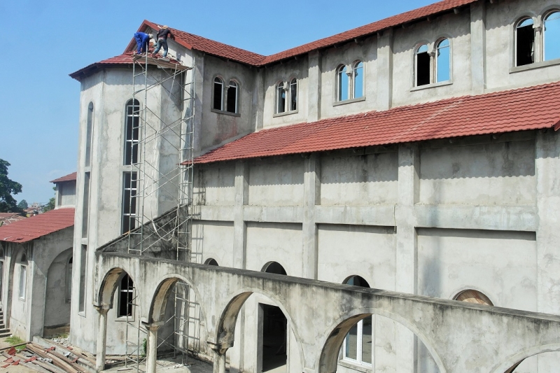 1.Τα τελευταία κεραμίδια στην οροφή του Καθεδρικού Ναού του Αγίου Δημητρίου τοποθετήθηκαν σήμερα,30 Ιανουαρίου 2016! Τα παράθυρα αλουμινίου τοποθετούνται...ο Καθεδρικός Ναός της Ορθοδόξου Εκκλησίας του Κονγκό προχωρά.