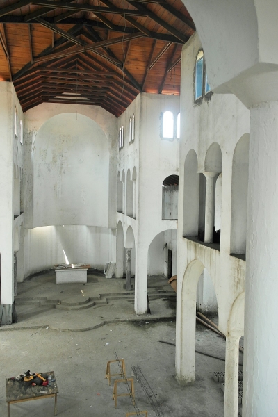 2. Ιερός Ενοριακός Ναός Αγίας Φωτεινής Pointe Noire (φωτογραφία Απριλίου 2015). Η κεραμοσκεπή ολοκληρώθηκε κατά το παρελθόν έτος. Ήδη τοποθετούνται τα παράθυρα αλουμινίου.