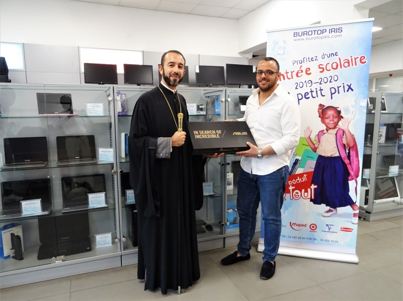 Κατά την παραλαβή των ηλεκτρονικών υπολογιστών ο Σεβασμιώτατος εξέφρασε προς τον τοπικό Διευθυντή κ.Khoury την ευγνωμοσύνη της τοπικής Εκκλησίας για τις πολλαπλές ευεργεσίες του Ιδρύματος BUROTOP IRIS τόσο προς τα ορθόδοξα Εκπαιδευτήρια, όσο και προς το πρότυπο Ορφανοτροφείο «Άγιος Ευστάθιος» της Ι.Μητροπόλεως.