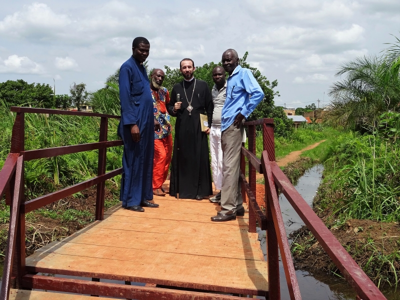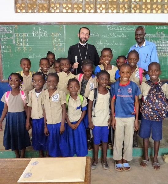 Ακολούθησε συνάντηση με τους μικρούς μαθητές του παρακειμένου Ορθοδόξου Δημοτικού Σχολείου «Φως Εθνών», καθώς και επίσκεψη στην ολοκληρωθείσα νέα διάβαση που η τοπική Εκκλησία κατασκεύασε, προκειμένου να μειώσει κατά πολύ την απόσταση που υφίσταται μεταξύ του προαναφερθέντος σχολείου, του ορφανοτροφείου και του Ενοριακού Ναού Αγίας Φωτεινής –κατά συνέπεια και ολόκληρης της συνοικίας- και του κέντρου της πόλεως Dolisie.