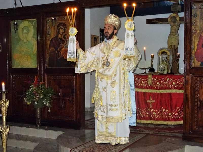 Προ του πέρατος της Θείας Ευχαριστίας ο Σεβασμιώτατος συνεχάρη για μία ακόμη φορά την Εκκλησιαστική Επιτροπή και τους ενορίτες του Ναού για την καθοριστική συμβολή τους στην ολοκλήρωση των εργασιών ανέγερσης του νέου Καθεδρικού Ναού.