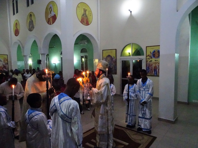 Τα μεσάνυχτα της 31ης Δεκεμβρίου προς 1η Ιανουαρίου 2020 ο Σεβ. Μητροπολίτης Μπραζαβίλ και Γκαμπόν κ.Παντελεήμων ετέλεσε την Θεία Λειτουργία στον Ιερό Ενοριακό Ναό Αγίας Φωτεινής προαστίου Mpaka του Pointe-Noire. Επίσης εκήρυξε τον θείο λόγο, ενώ συνεχάρη για μία ακόμη φορά τον Εφημέριο, π. Σιλουανό Nkounkou και την Ενοριακή Επιτροπή του Ναού για την πρόοδο της κοινότητος.