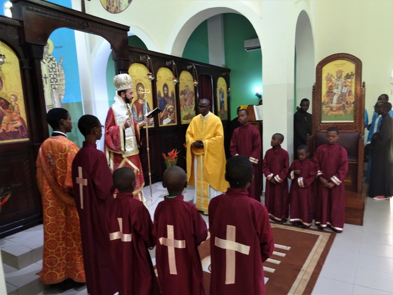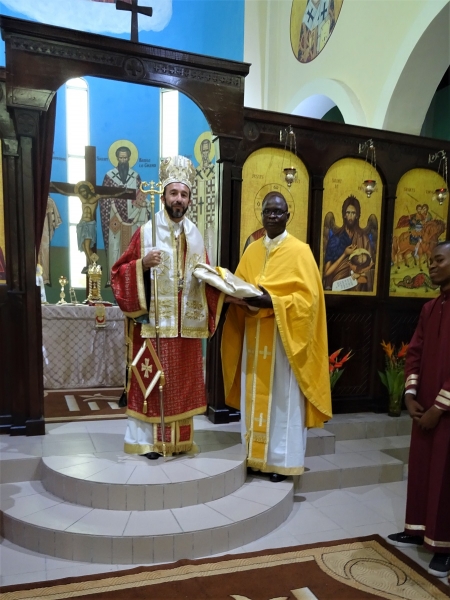 Την Κυριακή, 19η Αυγούστου 2018, ο Σεβ. Μητροπολίτης Μπραζαβίλ και Γκαμπόν κ.Παντελεήμων ετέλεσε την Θεία Λειτουργία στον προσφάτως εγκαινιασθέντα Ιερό Ενοριακό Ναό Αγίας Φωτεινής, στο προάστειο Mpaka του Pointe-Noire, όπου κήρυξε τον θείο λόγο. Προ του πέρατος της Ευχαριστιακής Συνάξεως ο Σεβασμιώτατος προσέφερε ιερατική στολή στον Εφημέριο, Αιδεσιμ.π.Σιλουανό Nkounkou.