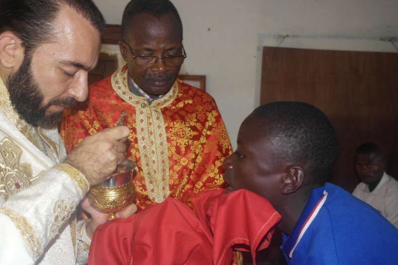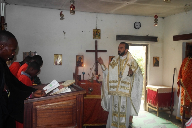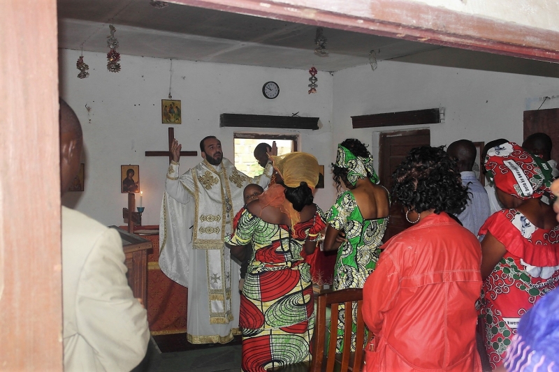 Ευρισκόμενος στην πόλη Ipfondo του βορείου Κονγκό-Μπραζαβίλ ο Θεοφιλ. Επίσκοπος Μπραζαβίλ και Γκαμπόν κ. Παντελεήμων την Κυριακή, 8η Μαΐου 2016, ετέλεσε την Θεία Λειτουργία και εκήρυξε τον θείο λόγο στην ενοικιαζομένη οικία που προσωρινώς χρησιμοποιείται ως χώρος προσευχής έως της περατώσεως των εργασιών ανεγέρσεως του Ιερού Ναού Τιμίου Προδρόμου-Αγ.Νικολάου. Ακόμη, έψαλε επιμνημόσυνη δέηση υπέρ αναπαύσεως της ψυχής του ορθοδόξου αρχηγού της φυλής των Πυγμαίων, μακαριστού αδελφού Bokale.