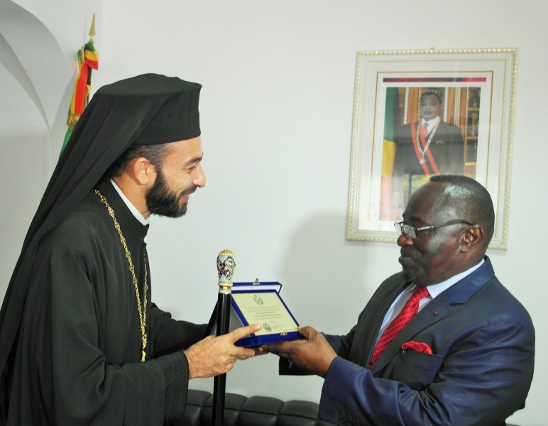 Κατά την συνάντηση ο Θεοφιλέστατος επέδωσε τιμητική πλακέττα στον κ.Κυβερνήτη εκφράζοντας την ευγνωμοσύνη της τοπικής Εκκλησίας για την αγαστή συνεργάσια με τον ίδιο και τις εν γένει κρατικές αρχές που αυτός εκπροσωπεί στην διοικητική περιφέρεια Kouilou (δηλαδή την διοικητική περιφέρεια της συμπρωτεύουσας Pointe-Noire). Ο Εξοχ.κ.M’Paka ευχαρίστησε τον Επίσκοπο για το επιτελούμενο κοινωνικό έργο και την ενεργή παρουσία της Ορθόδοξης Εκκλησίας στο Κονγκό, συμπληρώνοντας ότι οι κρατικές υπηρεσίες θα υποστηρίζουν πάντοτε τις προσπάθειές Αυτής.
