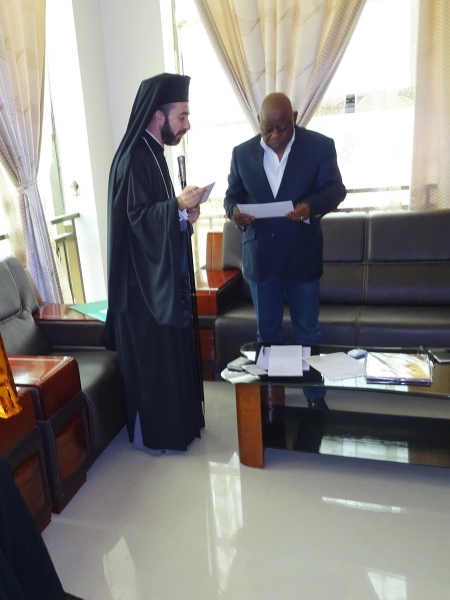 Ο Εξοχ. κ. Κυβερνήτης ευχαρίστησε τον Επίσκοπο για το επιτελούμενο κοινωνικό έργο και την δυναμική παρουσία της Ορθόδοξης Εκκλησίας στην διοικητική περιφέρεια της οποίας έχει την ευθύνη, ως και στη χώρα, συμπληρώνοντας ότι οι κρατικές υπηρεσίες θα υποστηρίζουν πάντοτε τις προσπάθειες της Ι.Μητροπόλεως Μπραζαβίλ.