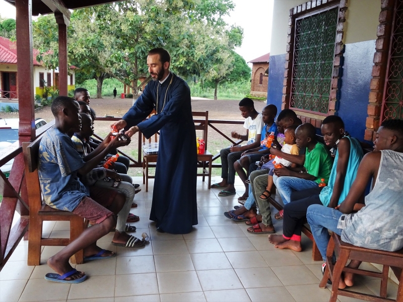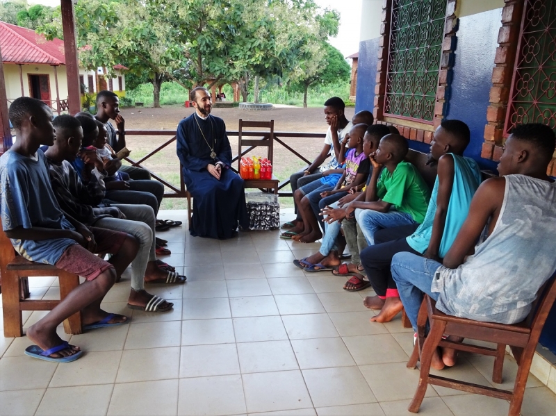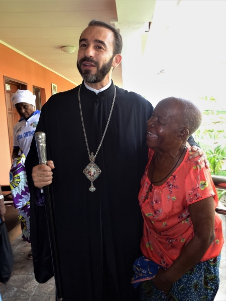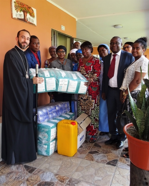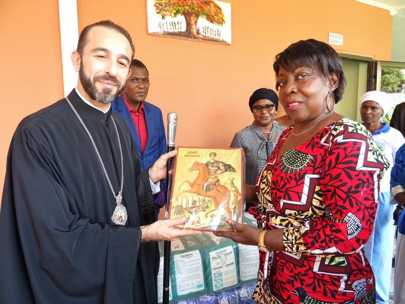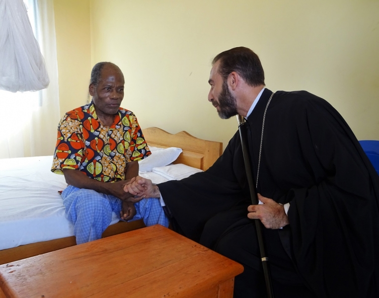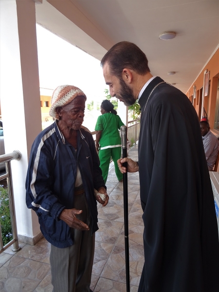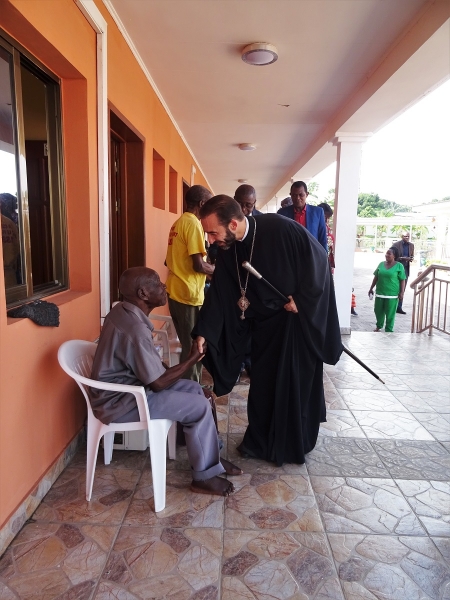 Ακολούθως ο Σεβασμιώτατος, συνοδευόμενος από τον Διάκονο π.Ιάκωβο  Ntsoumou Miayokela, τον Πρόεδρο κ.Adrian Hossie και τα μέλη της Εκκλησιαστικής Επιτροπής του Ι.Ενοριακού Ναού Αναστάσεως του Κυρίου Brazzaville, επισκέφθηκε τον μοναδικό στη χώρα Οίκο Γερόντων (Maison des Seniors) στο φτωχό και απομακρυσμένο προάστιο Mfilou της κονγκολέζικης πρωτεύουσας,  για να προσφέρει ικανή ποσότητα απαραιτήτων ειδών ατομικής υγιεινής προς τους πενήντα περιθαλπομένους απόρους γέροντες και γερόντισσες.