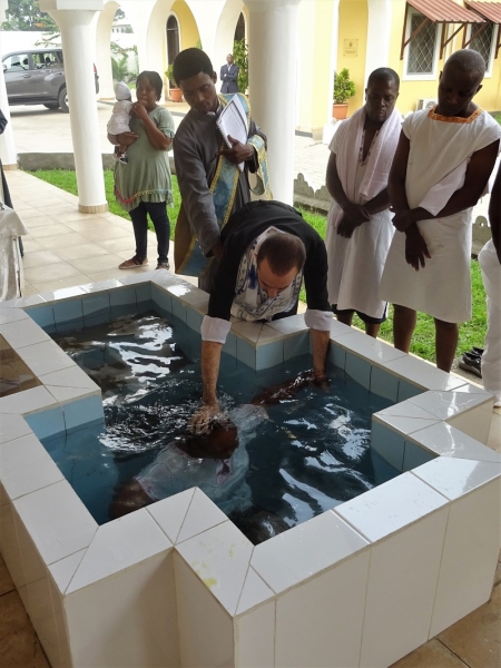 Την 14η Ιουνίου 2019 ο Σεβ. Μητροπολίτης Μπραζαβίλ και Γκαμπόν κ.Παντελεήμων ετέλεσε στο υπαίθριο βαπτιστήριο του Ιερού Καθεδρικού Ναού Αγίου Δημητρίου Pointe-Noire τις βαπτίσεις κατηχουμένων όλων των ηλικιών.