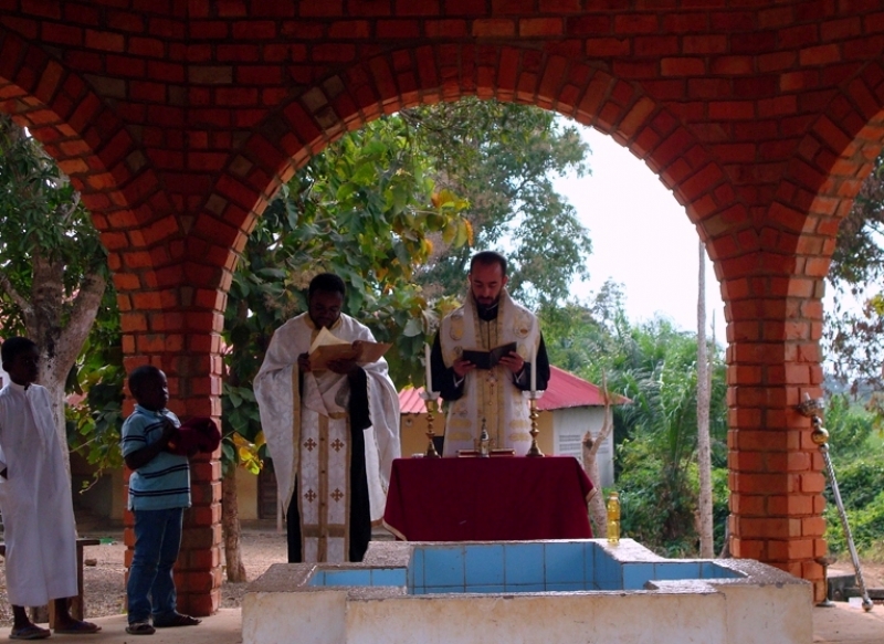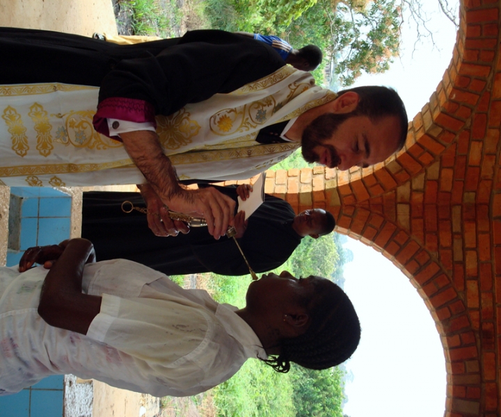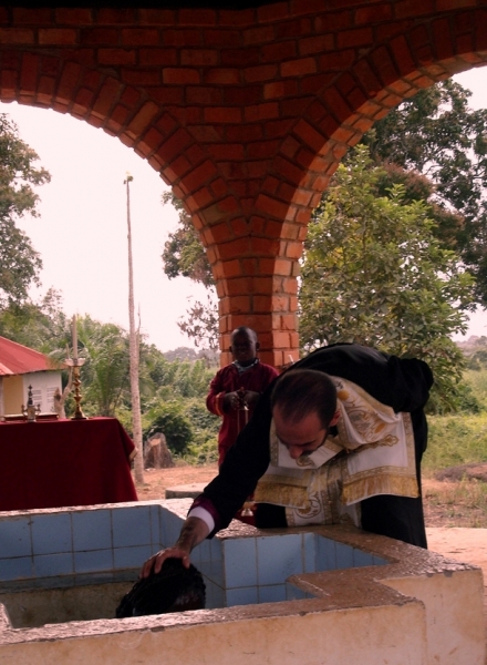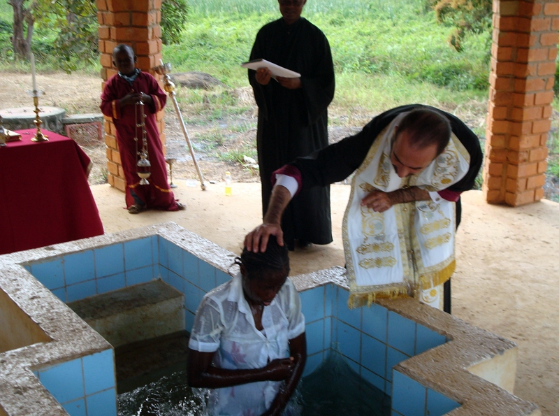 Κατά την παραμονή του στην πόλη Dolisie για την διεξαγωγή του 1ου Ετησίου Συνεδρίου Ορθοδόξων Νέων της Ι.Επισκοπής Μπραζαβίλ και Γκαμπόν ο Θεοφιλ. Επίσκοπος κ.Παντελεήμων ετέλεσε τις βαπτίσεις δύο κοριτσιών, της Δανιηλίας και της Θέκλας, στο υπαίθριο βαπτιστήριο του Ιερού Ενοριακού Ναού Αγίας Ειρήνης.