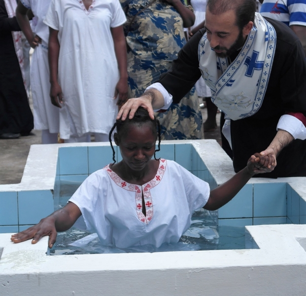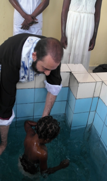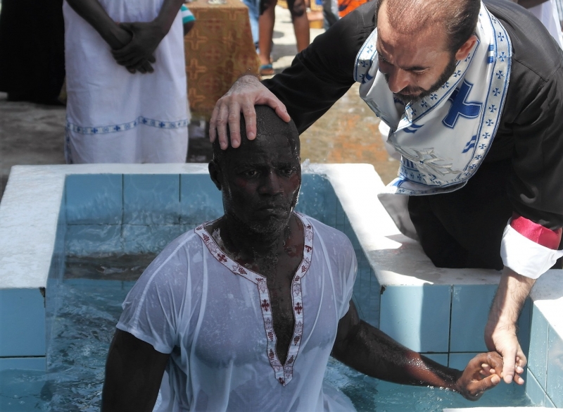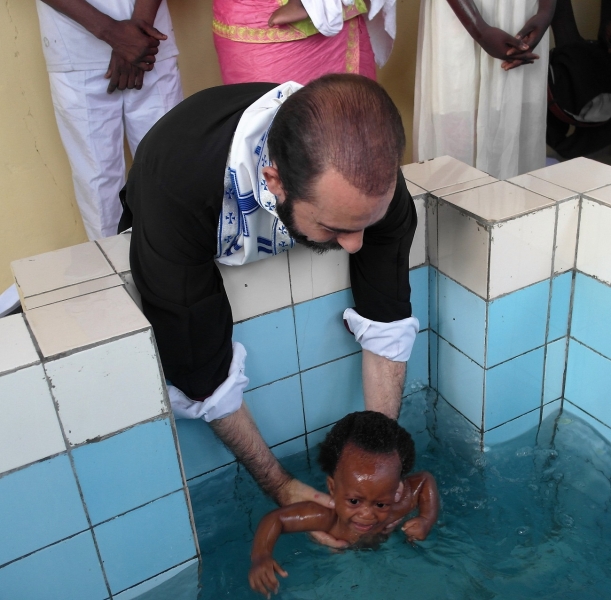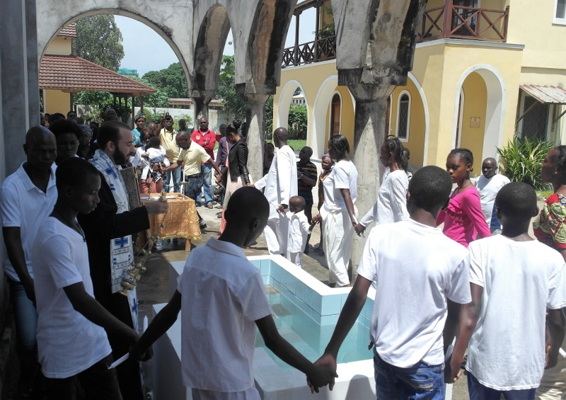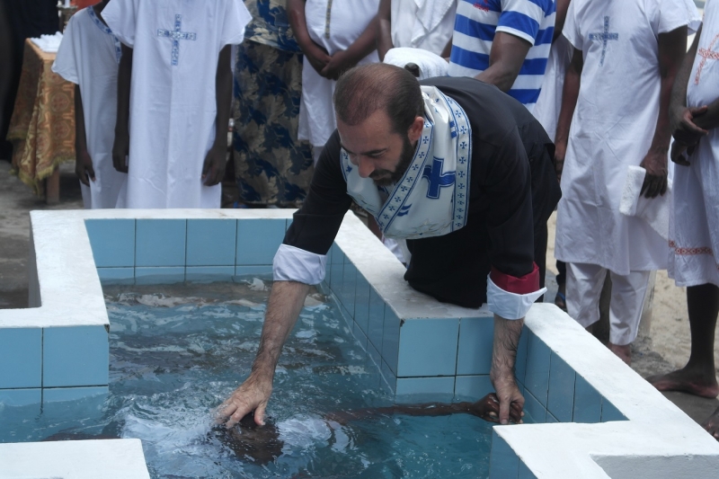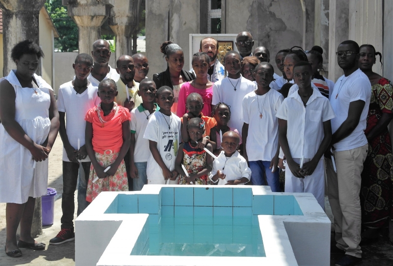 Το πρωί του Μ.Σαββάτου, 30ης Απριλίου 2016, ο Θεοφιλ. Επίσκοπος Μπραζαβίλ και Γκαμπόν κ.Παντελεήμων ετέλεσε τις βαπτίσεις τριανταπέντε νεοφωτίστων γηγενών όλων των ηλικιών, προερχομένων από τις τρεις Ενοριακές Κοινότητες του Pointe-Noire, στο υπαίθριο βαπτιστήριο του υπό ανέγερσιν Ιερού Καθεδρικού Ναού Αγίου Δημητρίου της ιδίας πόλεως.